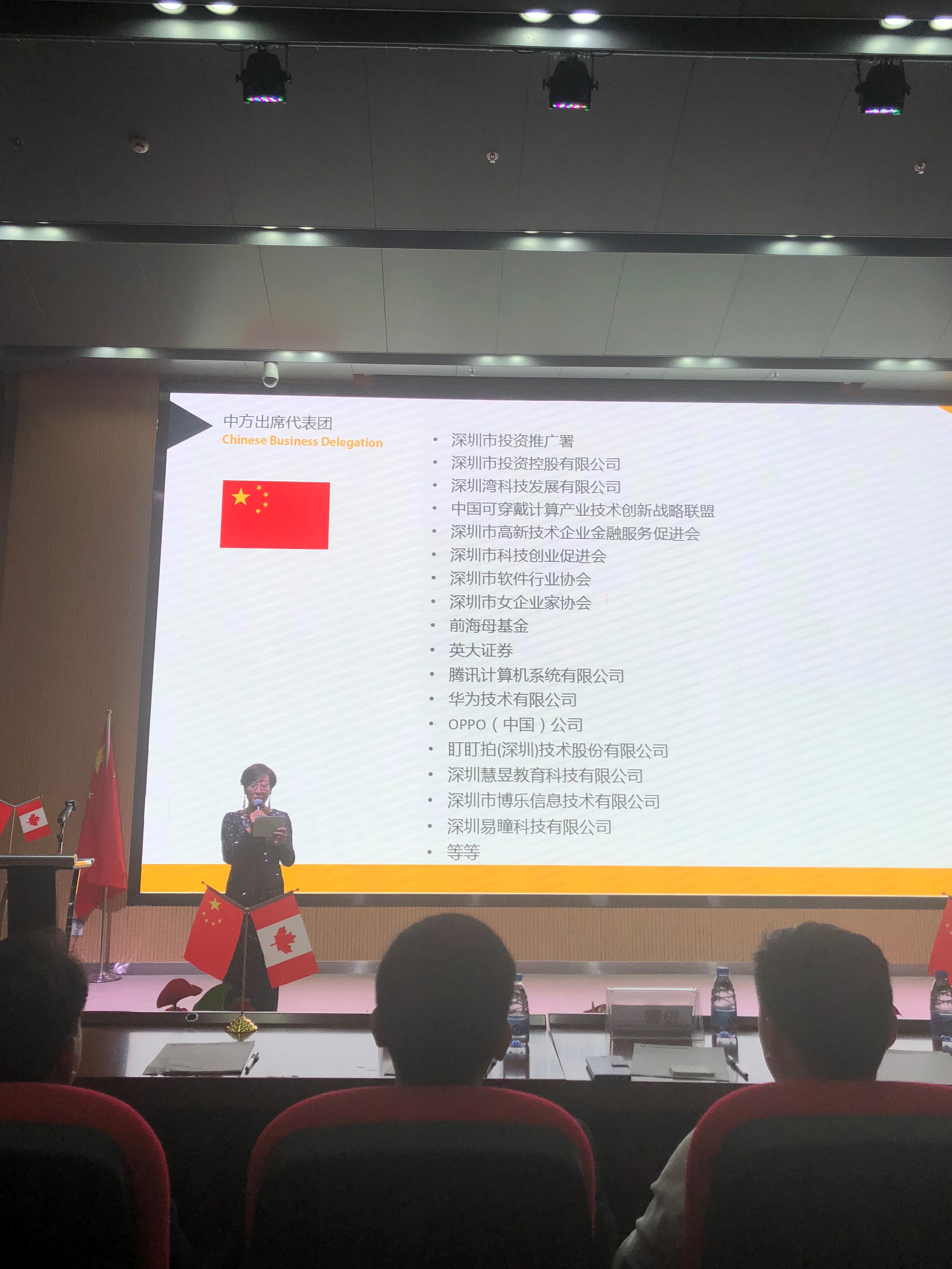 加拿大驻广州总领事馆、加拿大商业发展银行、加拿大政府驻深圳贸易代表处、加拿大Miovision公司、加拿大Fluent.ai公司、加拿大IRYStec公司、加拿大Zighra公司等作为加拿大商务代表团出席峰会,深圳市投资推广署、深圳市投资控股有限公司、深圳湾科技发展有限公司、中国可穿戴计算产业技术创新战略联盟、深圳市高新技术企业金融服务促进会、深圳市科技创业促进会、深圳市软件行业协会、深圳市女企业家协会、前海母基金、英大证券、腾讯、华为、OPPO、盯盯拍、深圳市博乐信息技术有限公司、深圳易瞳科技有限公司等作为中方代表团出席峰会。