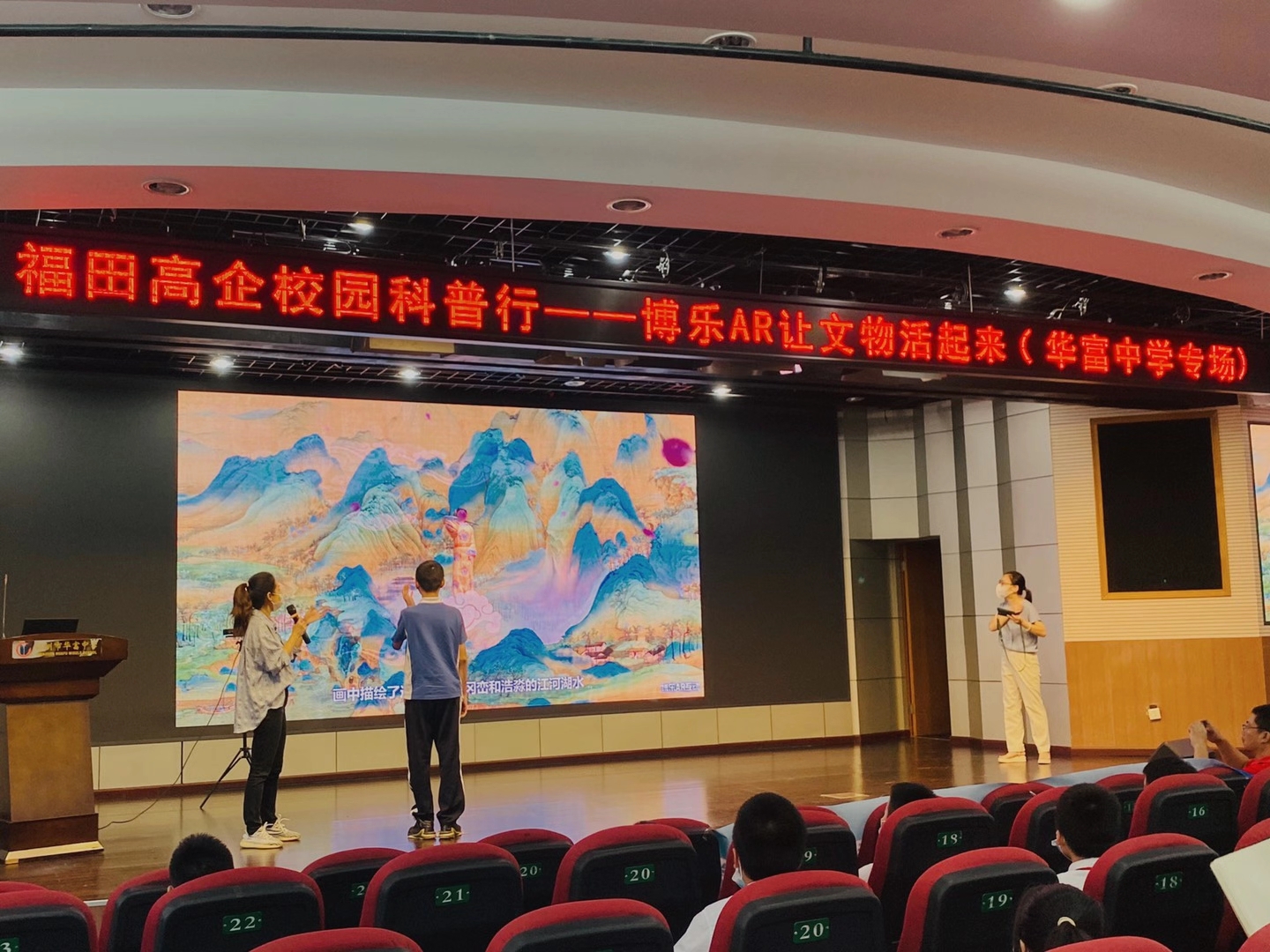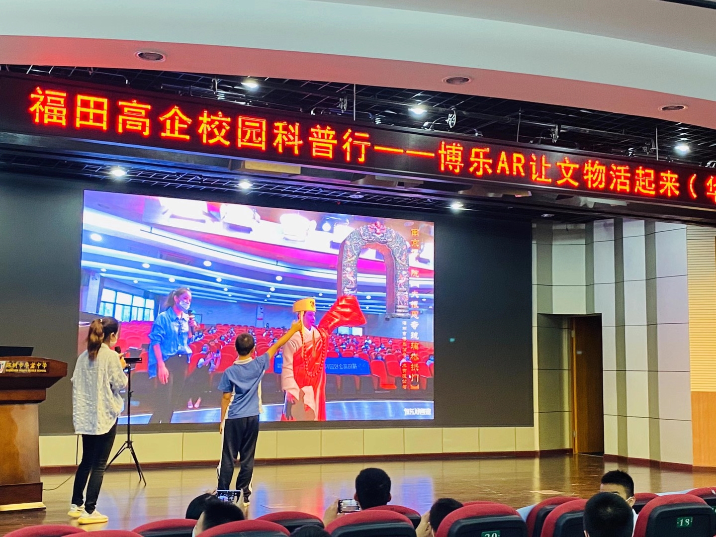在福田区科协、福田区教育局的指导下,“福田区高企校园科普行”活动正式启动,博乐信息《AR让文物活起来》科普课堂第一站走进华富中学,为同学们带来一场与众不同的AR互动体验课,带领同学们云游全国十大博物馆,了解每一个国家宝藏背后的历史故事。