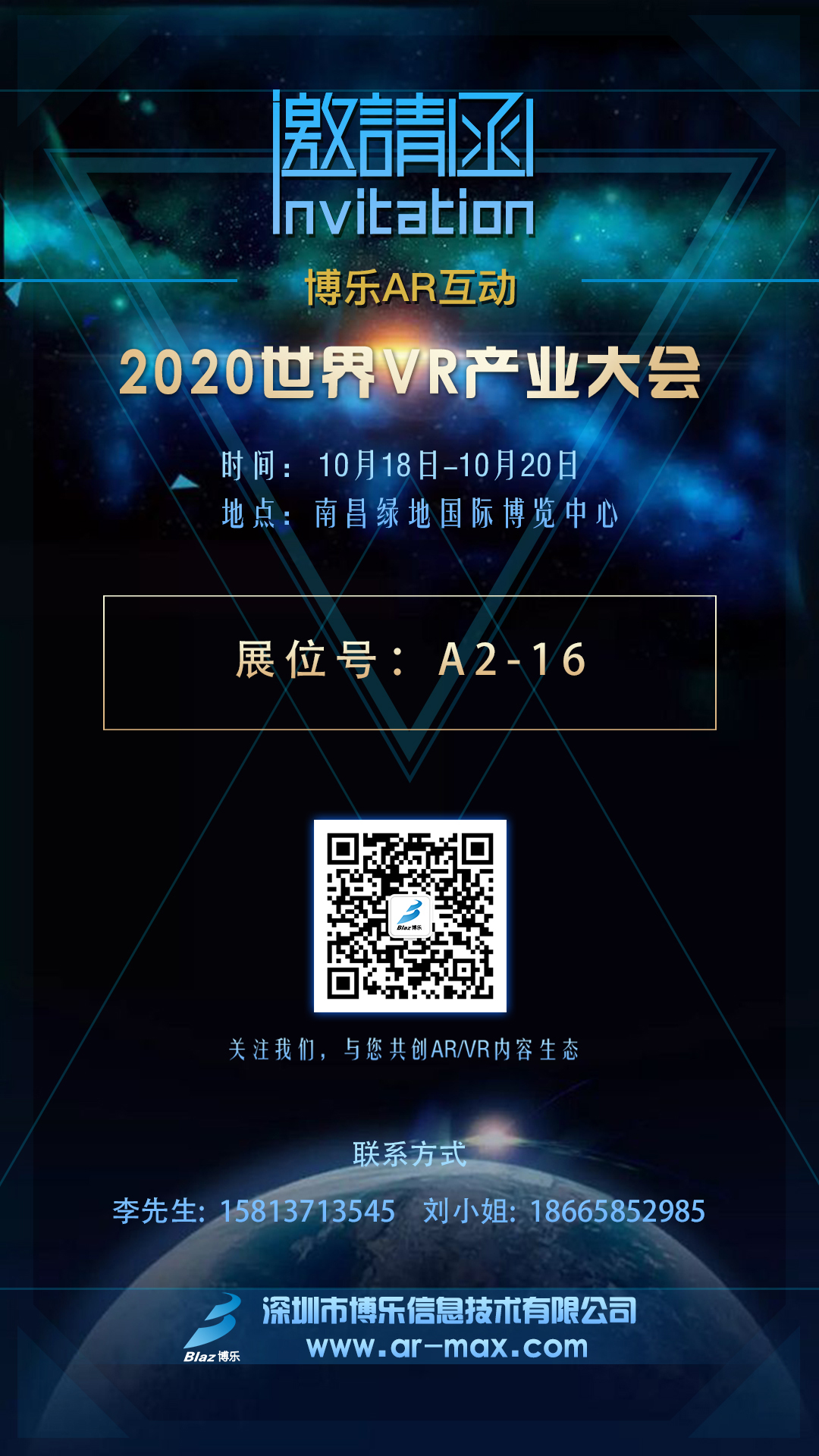 10月18日-20日,全球VR领域规模最大、规格最高、影响最广的2020世界VR产业大会将在南昌绿地博览中心盛大开幕,本次大会以“VR让世界更精彩——育新机 开新局”为主题。博乐信息受邀亮相A2馆A2-16展位,将展示AR在文旅、幼教、金融、党建等各个行业的创新应用,期待您的光临。