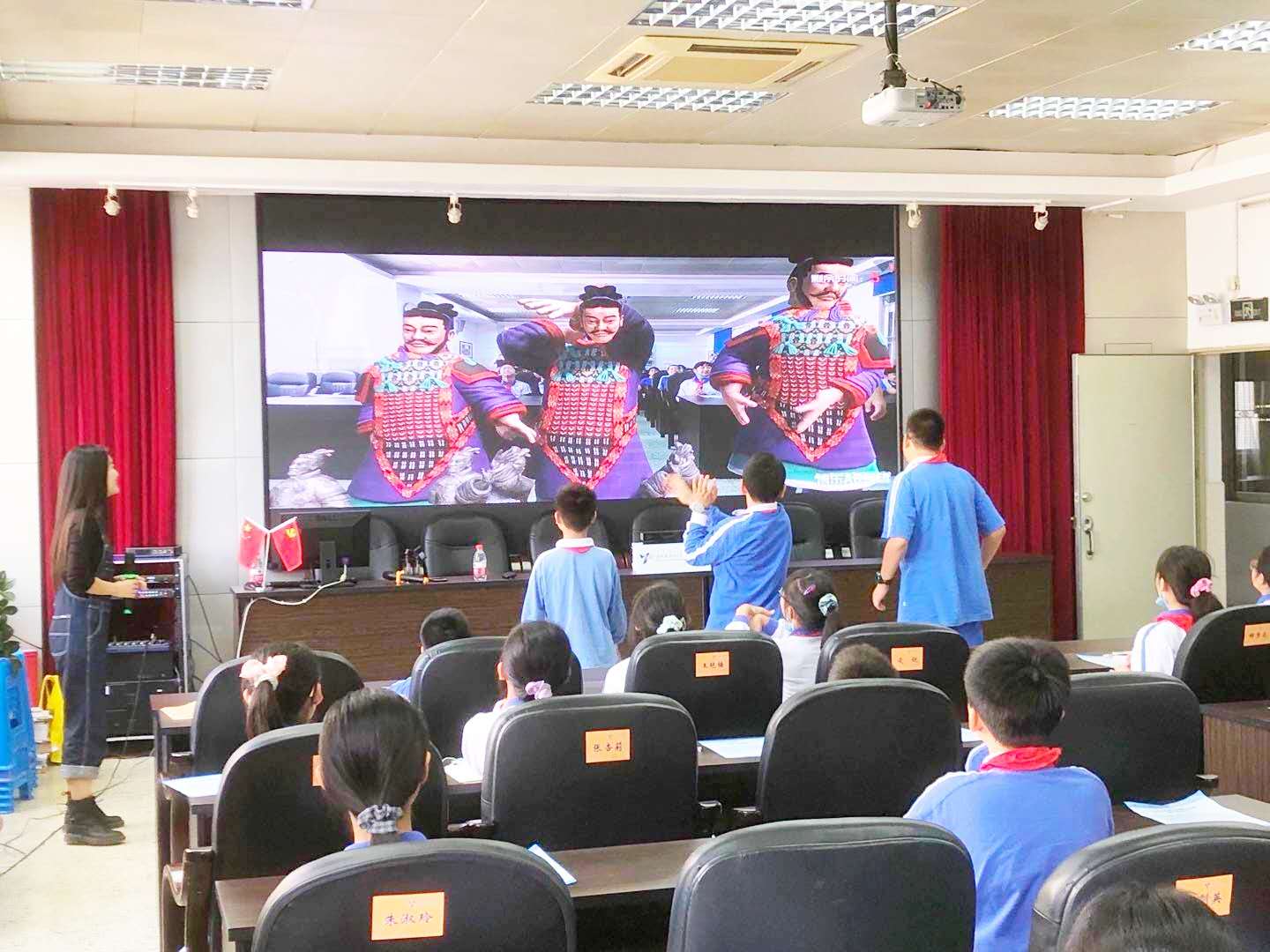 园岭外国语小学以改革创新为动力,在双语教学、国学教育等方面深入探索,创建特色品牌学校。本次科普校园行活动带领同学们体验了《千里江山图》《万岁通天帖》《琉璃塔拱门》《唤醒兵马俑》等全国多个博物馆镇馆之宝文物的互动,以数字化AR科技,把每一件文物背后的历史故事带进校园,讲给每一个学生听。