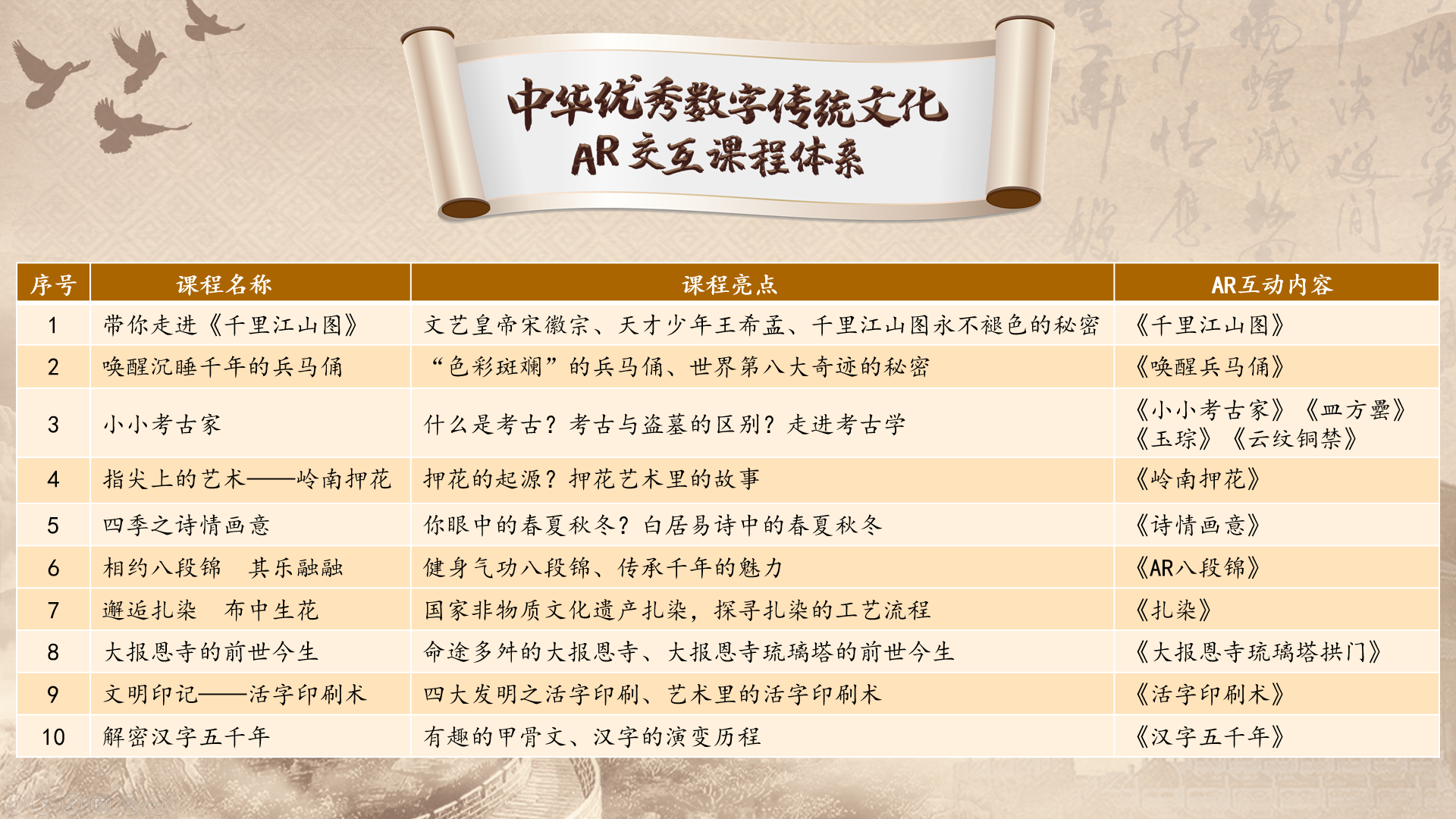 随着“双减”“暑期服务”“非遗文化进课堂”“科普学分制”等相关教育政策的出台,科技与传统文化结合的课堂,以互动化、智能化、趣味化的体验形式,打造寓教于乐的创新课堂,弘扬传统文化,激发学生的民族自豪感。