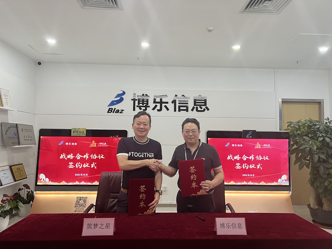 2021年10月28日,博乐信息与深圳市筑梦之星科技有限公司签署战略合作,双方将强强联手,结合博乐信息XR领域产品及技术优势、筑梦之星各地众创空间市场资源优势,携手共建“中华优秀传统文化数字交互研学基地”。数字科技赋能文化传承,增强每一个青少年的文化自信与民族自豪感。