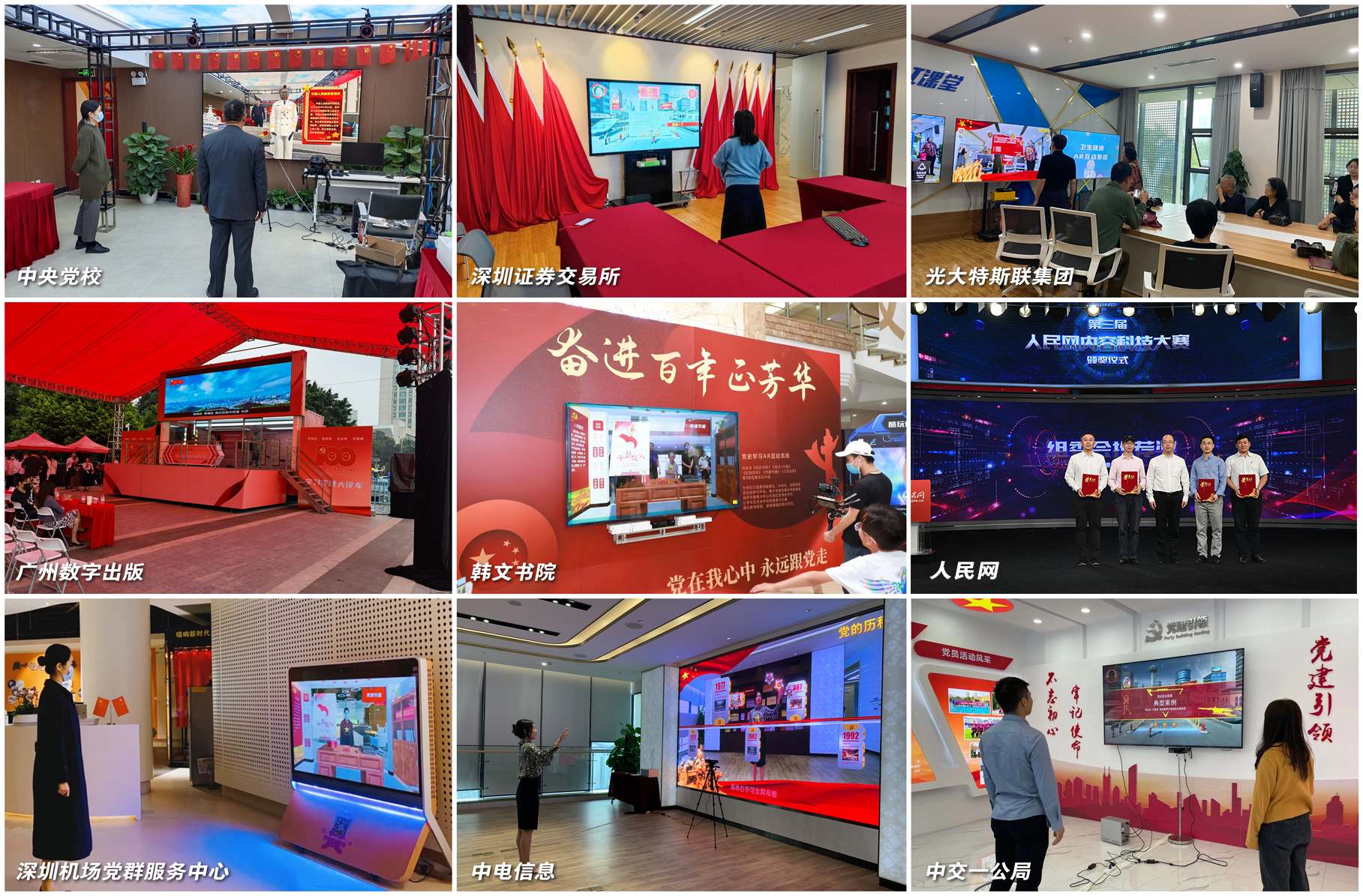 “5G-MEC+AR党建”系列产品自2019年在深圳机场党群服务中心试点推广以来,获得福田区工信局及深圳信通院的认可与支持,目前已落地全国15省份22城市,不仅荣获第三届人民网内容科技大赛组委会推荐奖;也是深交所、深国际、中电信息、中交一公局、光大特斯联、广州数字出版等企事业单位党建信息化智能互动学习产品;更是韩文书院、林芝二小、深圳福田外国语学校、广州黄埔区新港小学等学校青少年党史互动课程学习产品。