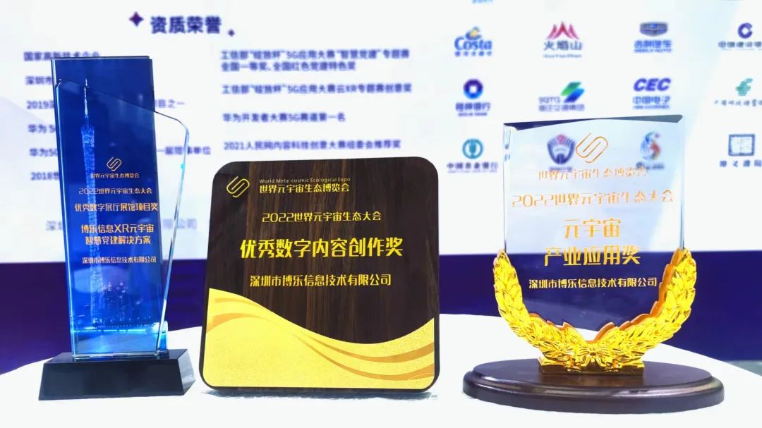 博乐信息凭借AR/VR领域精湛的数字文化内容生产力和别开生面的3D数字交互内容,荣获“元宇宙产业应用奖”“优秀数字内容创作奖”“优秀数字展厅展馆项目”等三个重要奖项。