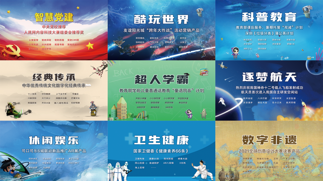 博乐信息AR交互内容数据库,全矩阵化呈现优质、海量的AR互动内容。涵盖科普教育、数字非遗、超人学霸、数字卫健、逐梦航天等多九大门类。