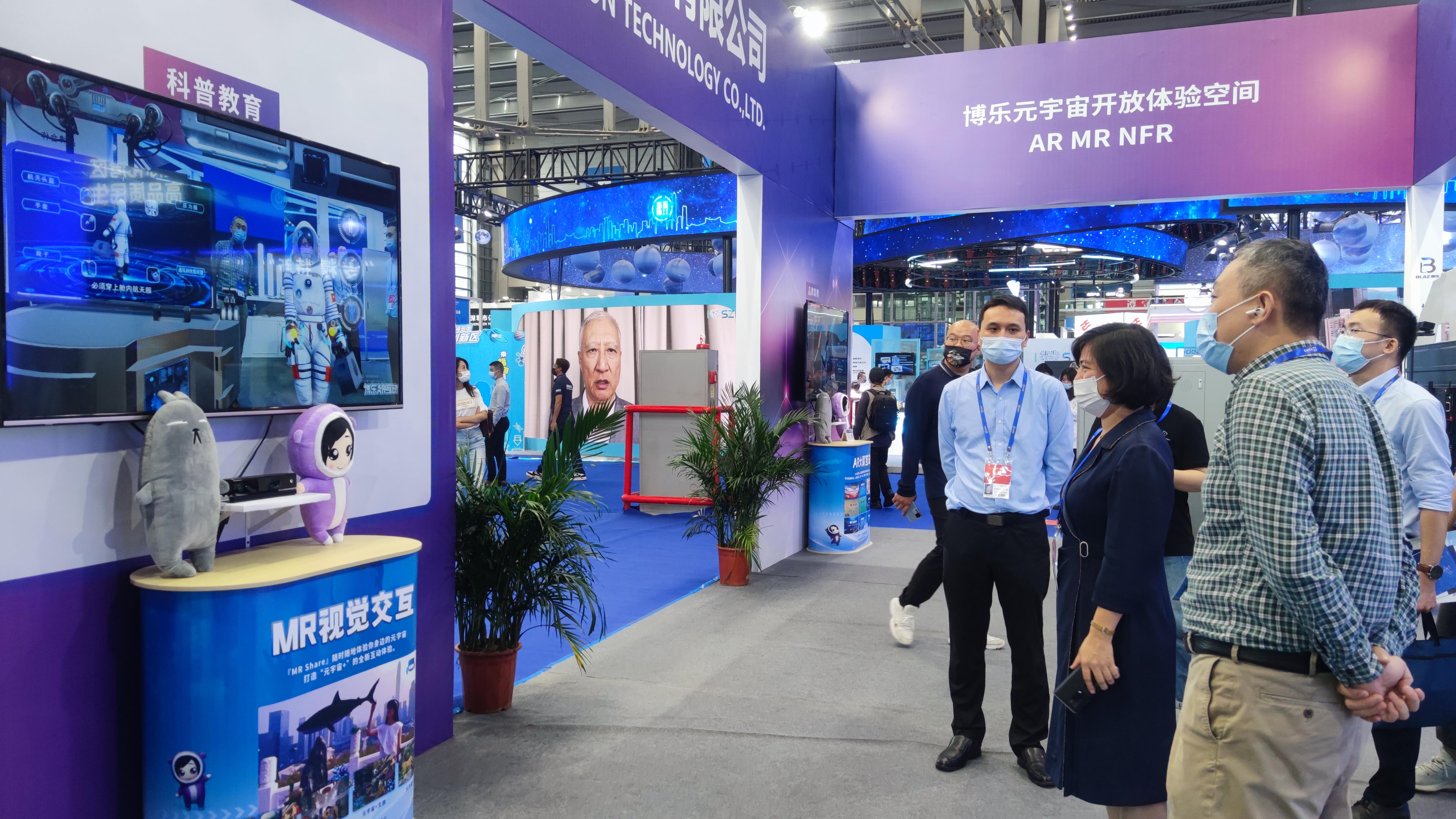 本届2022高交会上,博乐信息带来了最新的MR视觉交互应用,创新构筑了一个“元宇宙开放体验空间”,为展会展览转型升级和创新发展提供了创意新思路。