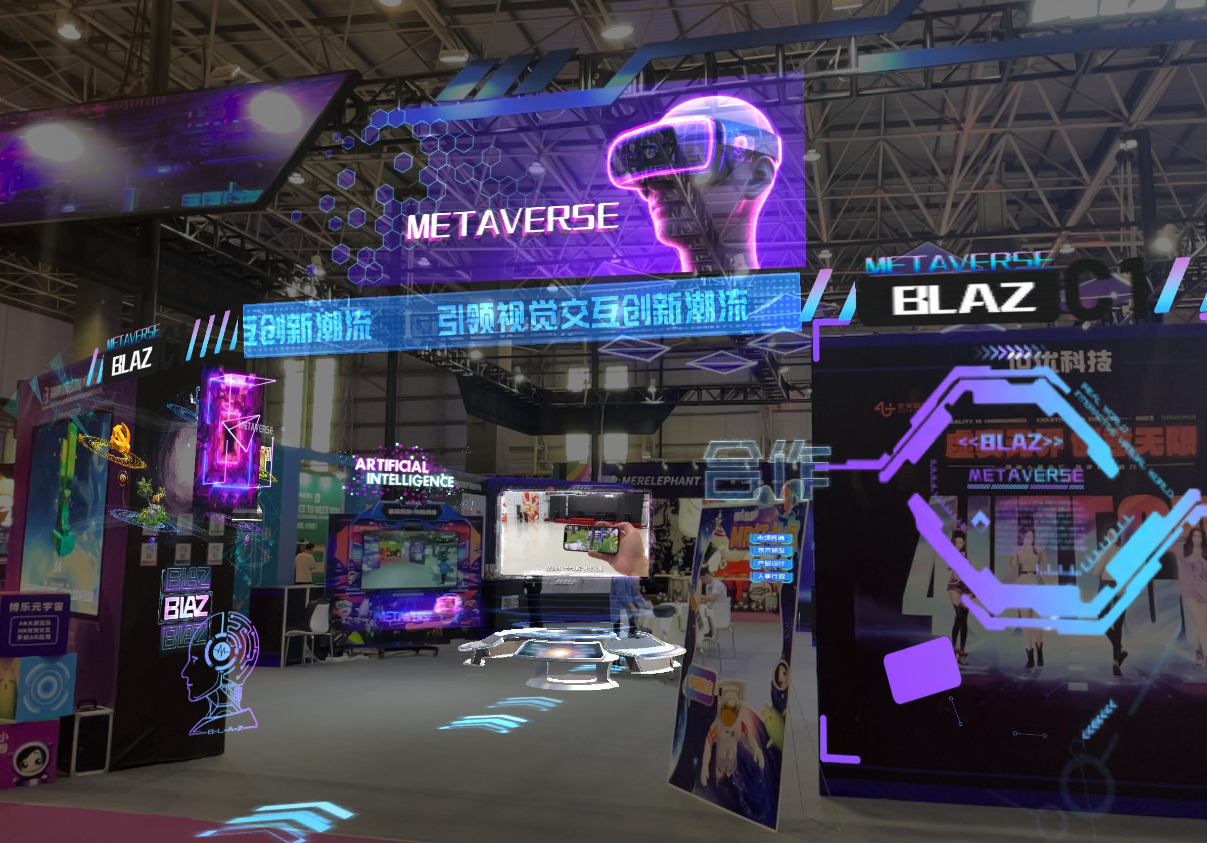 随着扩展现实技术瓶颈的不断突破,现实和虚拟之间的边界变得越来越模糊。博乐信息以AR(增强现实)和MR(混合现实)技术为核心,实现了展馆、场地布展、参观动线以及展品本身的科技感和互动性体验升级。