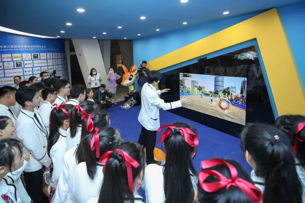 博乐信息还将AR技术引入到其他球类运动。如2020年第六届亚洲沙滩运动会,基于亚沙会吉祥物“亚亚”打造了AR虚拟合影、AR虚拟迎宾、沙滩排球赛等AR体感互动应用,为组委会赛事传播创意赋能。