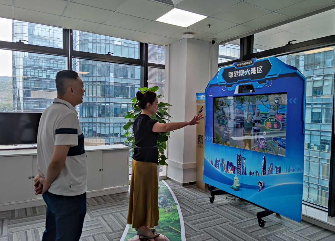 石岚导演先后体验了博乐信息AR大屏互动系统和MR视觉交互应用,并深入了解博乐信息通过元宇宙数字科技打造的沉浸式交互轻课程。