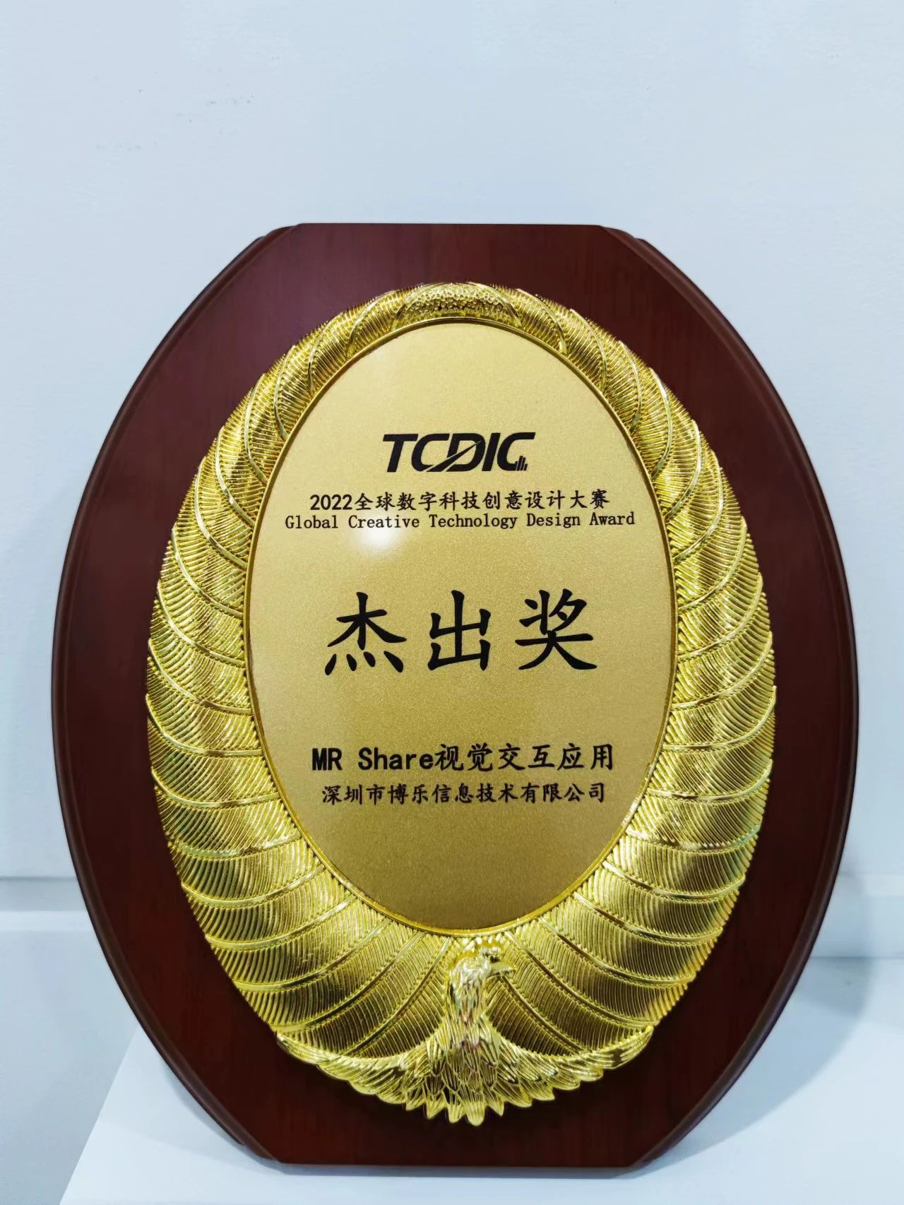 会上颁发了“第二届全球数字科技创意设计大赛”的获奖成果,博乐信息凭借“MR视觉交互应用”在数字科技领域的技术创新,荣获了大赛“杰出奖”。