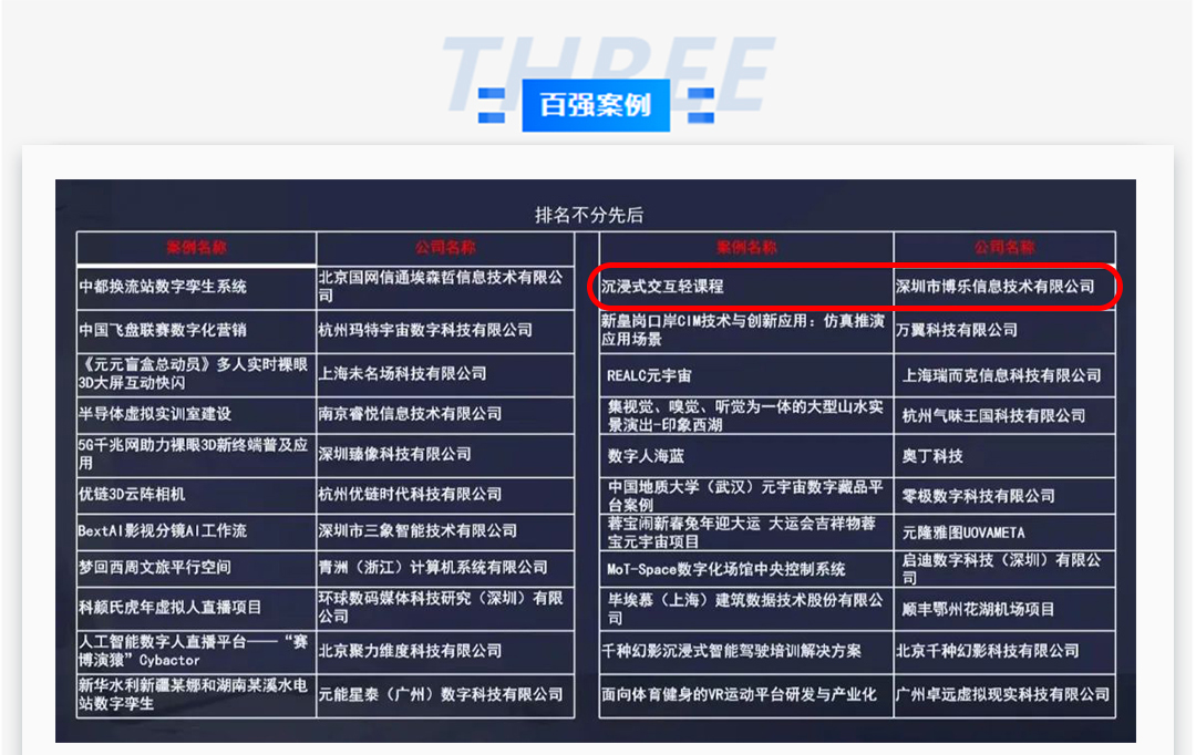 大会开幕式上,中国首创《元宇宙创新示范100强案例集》全集正式亮相!博乐信息自主研发的数字教育创新产品“沉浸式交互轻课程”成功入选100强案例集,数字教育成果再次受到行业高度认可。