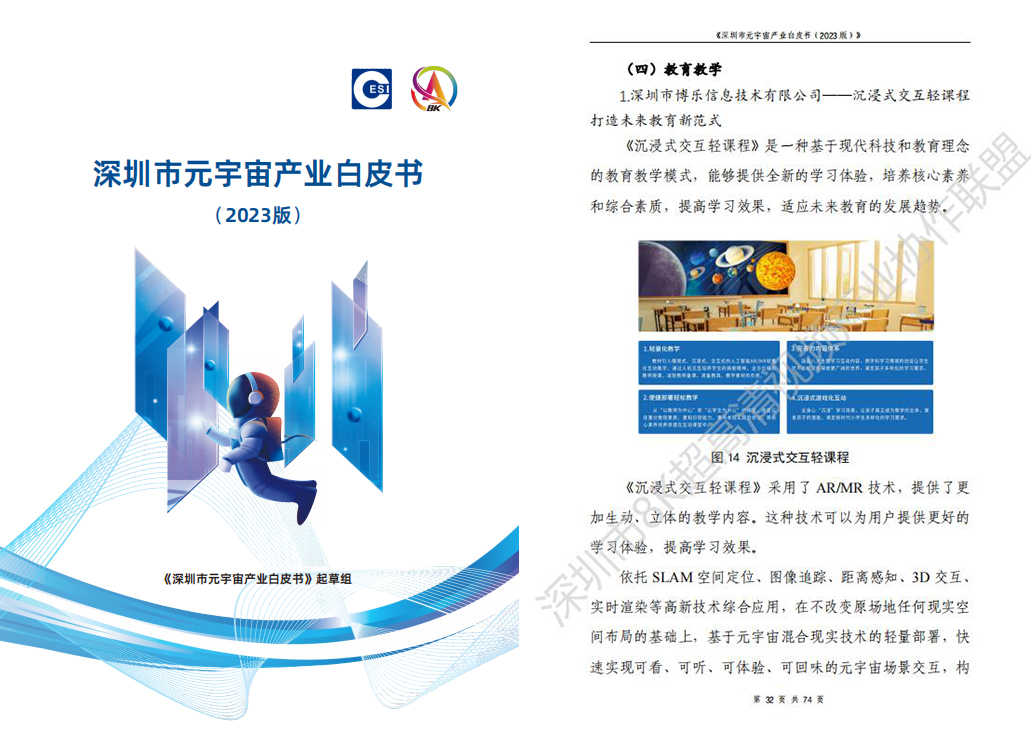 此次“沉浸式交互轻课程”作为教育元宇宙领域优秀案例次入选《元宇宙创新示范100强案例集》,充分展示了XR技术赋能教学场景的优势和应用前景,博乐信息也将持续技术创新,为青少年提供更加优质的教育资源和教学体验。