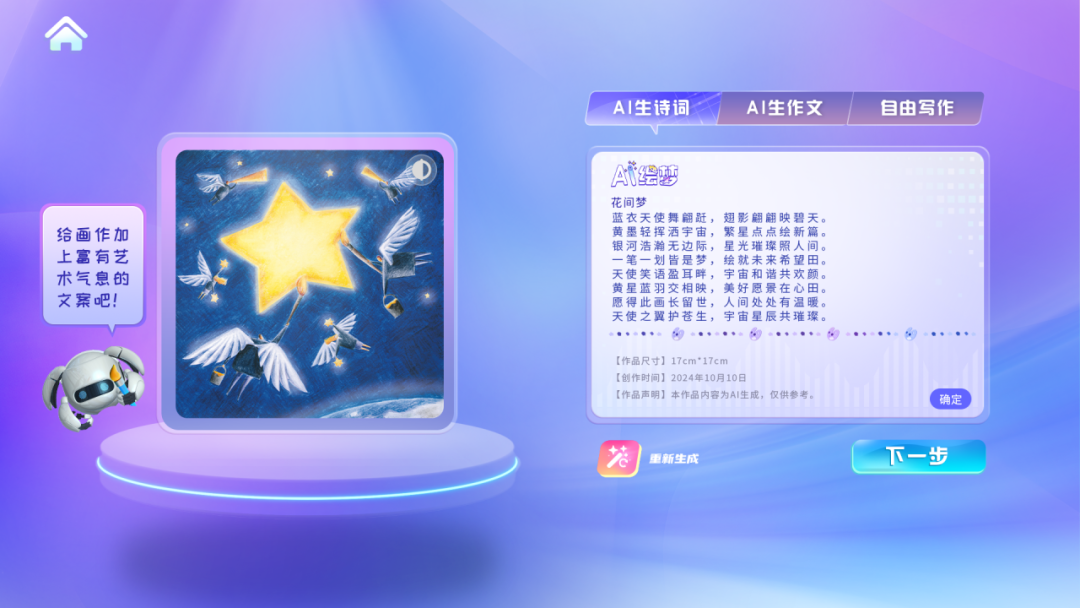 智能诗文生成,给作品匹配相关联的诗句散文,强化作品的艺术感染力。