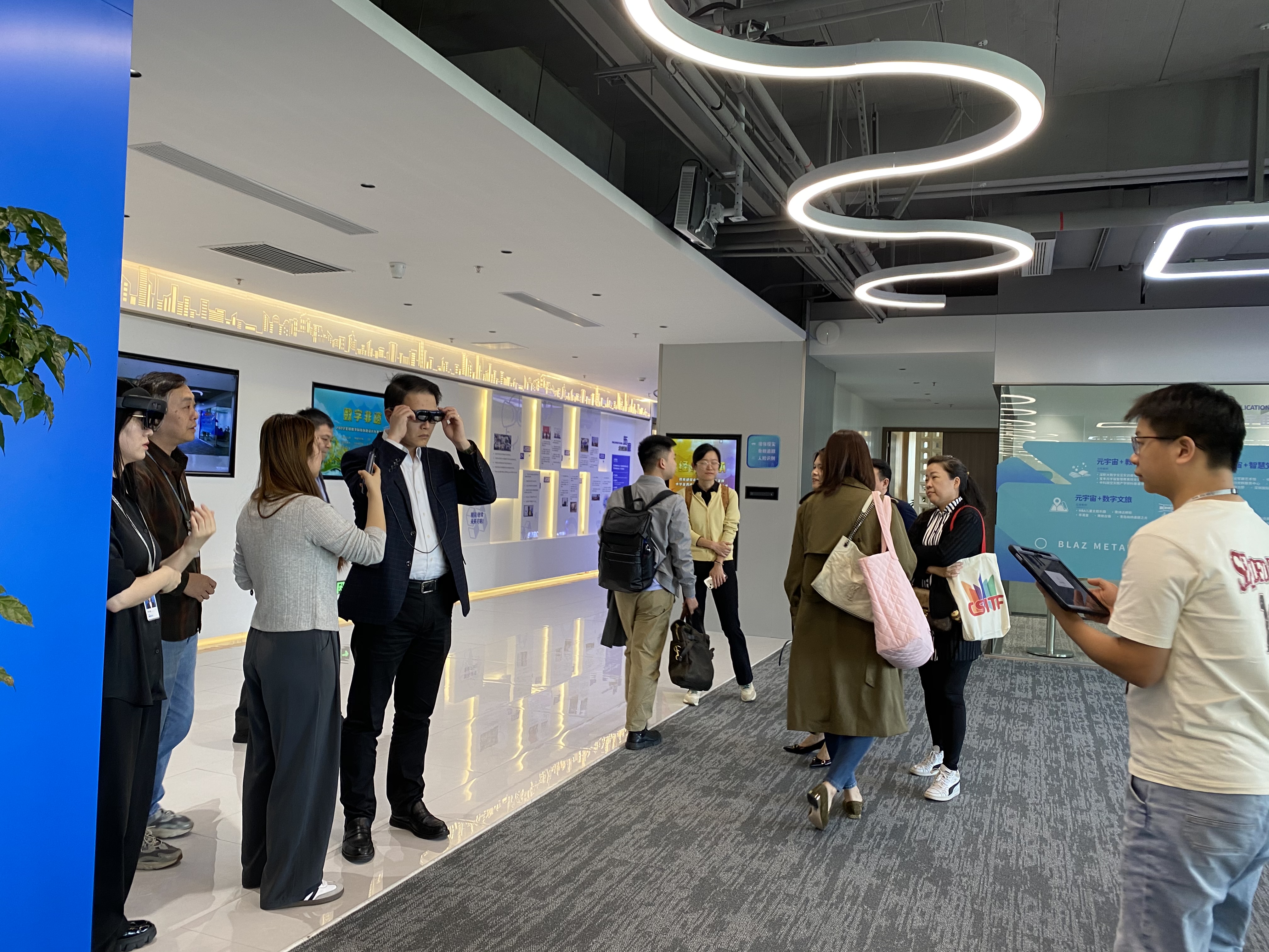 在博乐信息展厅,组委会领导一行首先被博乐信息的AR大屏互动系统所吸引。通过这一系统,参观者可以身临其境地体验虚拟与现实的无缝融合,感受数字化技术带来的震撼视觉效果。紧接着,领导们又亲身体验了博乐的MR视觉交互系统,该系统利用先进的混合现实技术,将虚拟信息与现实世界巧妙结合,为用户带来全新的交互体验。