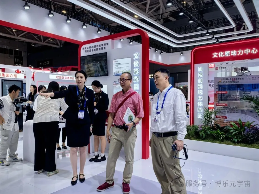 5 月 22 日,深圳文博会盛大启幕!博乐信息以“科技赋能文化”为核心,携双展位亮相深圳国际会展中心 14 号馆,开启一场元宇宙与千年文明的深度对话。现场人流如织,科技感与文化感交织的沉浸式体验,吸引众多领导、嘉宾及专业观众驻足探索。