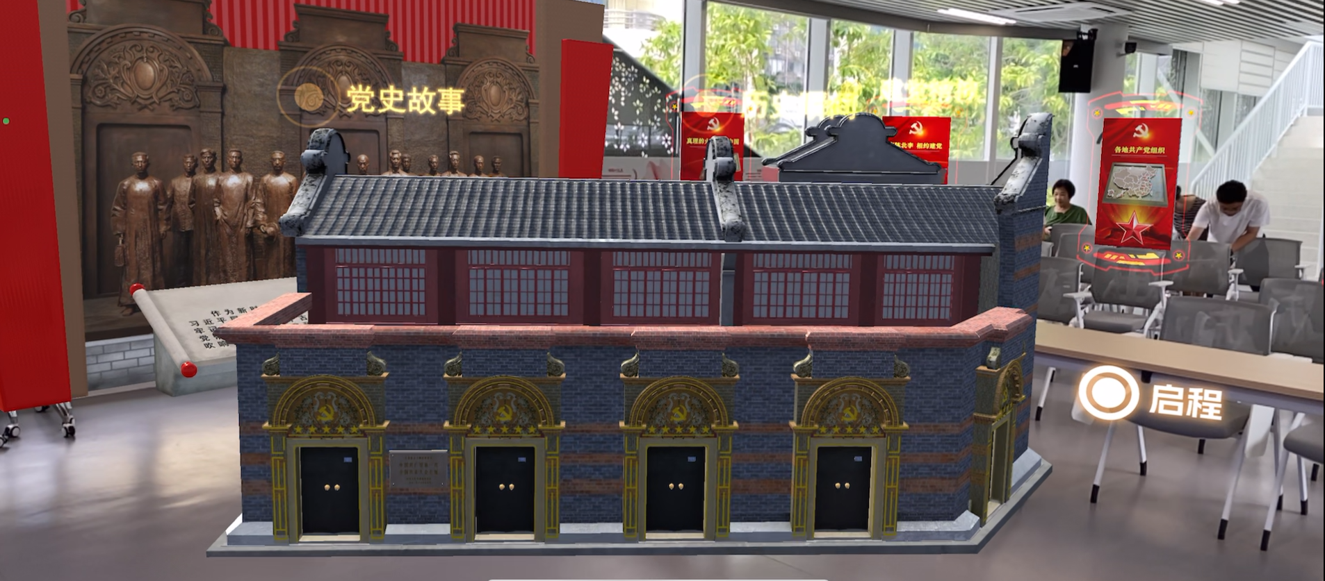 MR视觉交互系统可打造“穿越式”体验,如“走进中共一大会址+体验长征征程”,实现党建与国防主题的无缝衔接。AR互动大屏支持多人协同完成“党建知识竞赛+国防战术推演”融合任务,增强集体学习氛围。